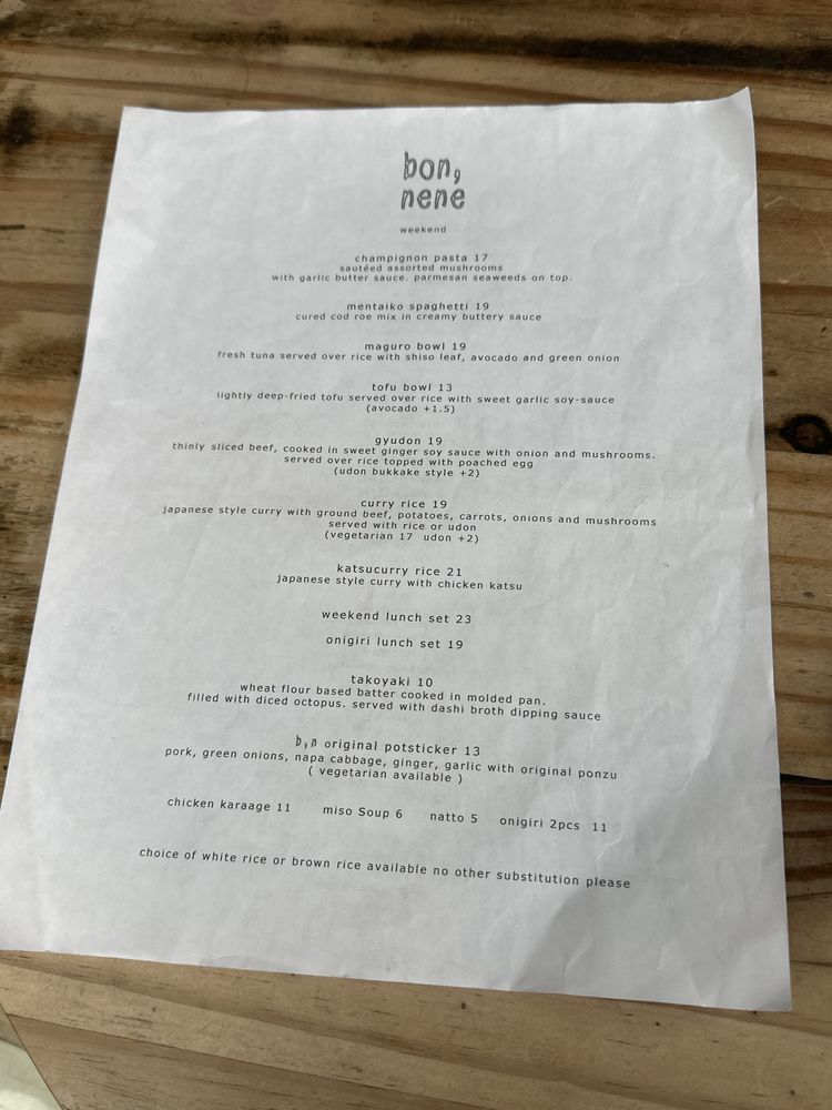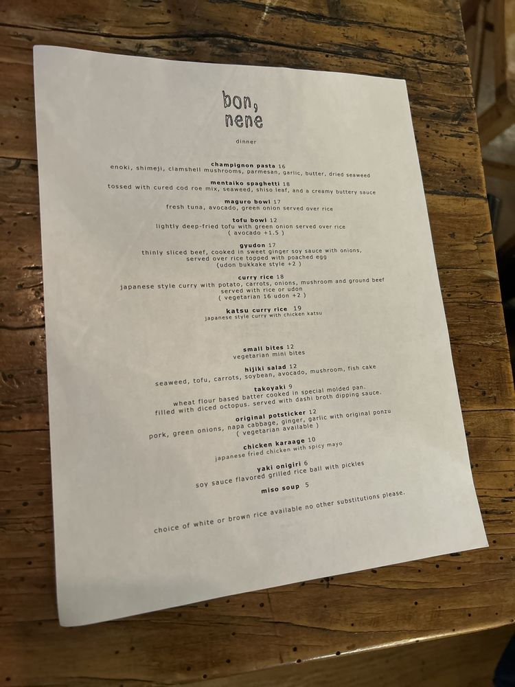 Whether you're indulging in savory chicken katsu curry or refreshing drinks during their happy hour, Bon Nene promises a satisfying culinary experience that caters to diverse palates while ensuring a welcoming vibe for all.