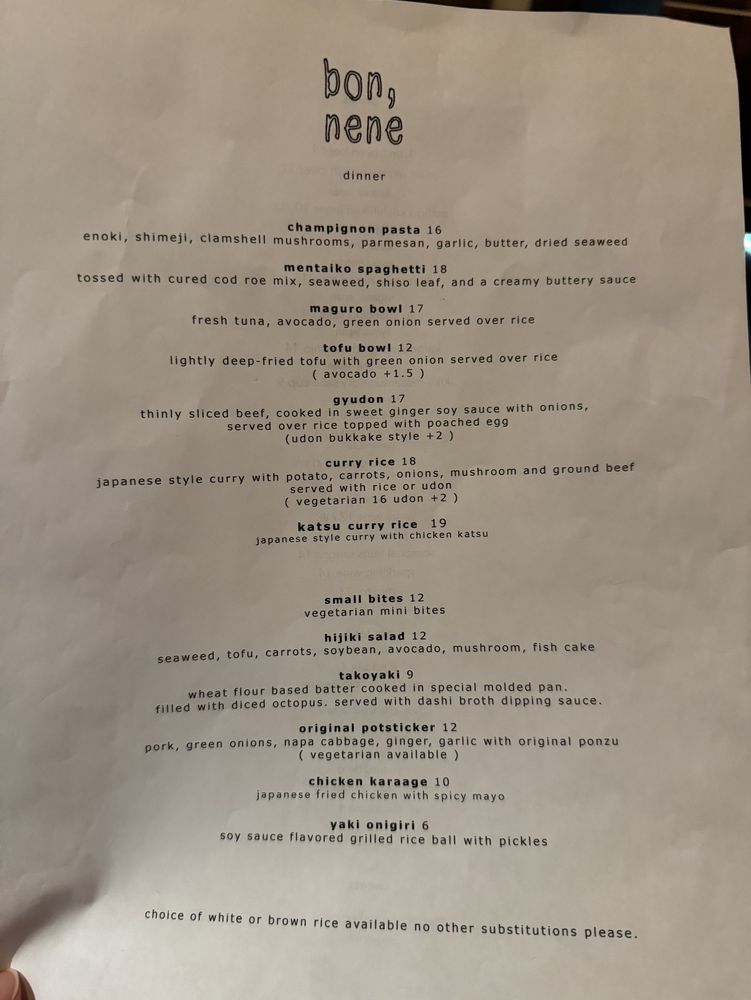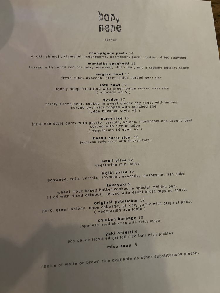 Introducing Bon Nene, a charming Japanese restaurant located in the heart of San Francisco's Mission District. This casual yet intimate eatery offers a unique fusion of Japanese and Italian flavors. The menu, while concise, features delightful options like Mentaiko spaghetti and Gyudon, showcasing rich umami and balanced textures that leave a lasting impression.